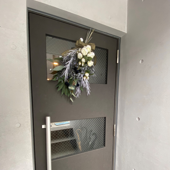 • 共有玄関の一角に花器を設置して、アレンジを入れる